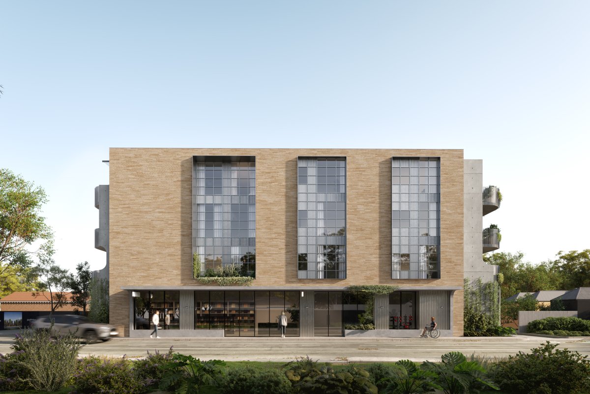 The podium holds medical to food a leisure activations, a childcare and office spaces and promotes jobs in the area, and forms a strong podium forms the base for a series of mid-rise residential towers and communal garden spaces, situated around the new proposed laneway which brings a Melbourne laneway feel to this large urban project. Community engagement and interaction sits at the heart of our design response, proposed in an growing Melbourne suburb thick with diversity and culture. A series of gridded forms hold louvre system to assist in the different orientations and catch and control sunlight where required. The formulated offset grid and vertical fenestration create a narrative of series of buildings.